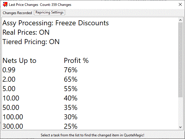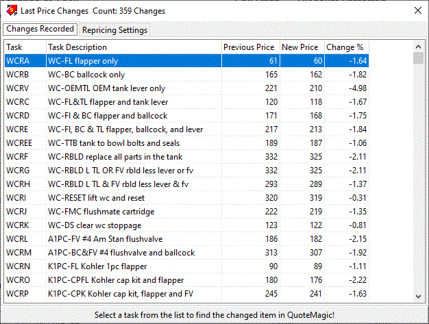 Reprice QuoteMagic Book, the program now keeps a record of all