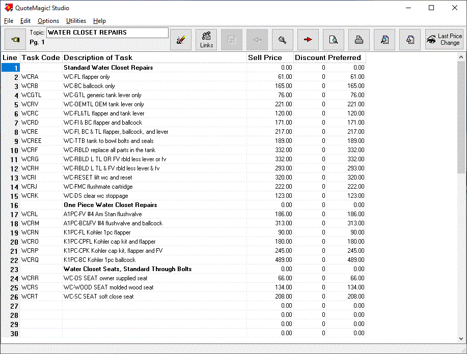 I have created a bunch of new shortcut codes for copper fittings and Viega press water fittings as part of the improvements that are in the works for our QuoteMagic app. If you would like to download the new shortcut codes, First back up your shortcut codes, Utilities, Selective backup, and check Shortcut codes, then click Utilities, Bonus Programs and choose Import Shortcut codes for all manufacturers. - Tim Clover