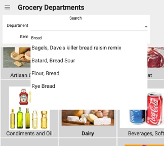 PleasePickUp! has a unique global search function that will search for items regardless of what department they are assigned. In this example, to start tap Item Search box and type “bread”.