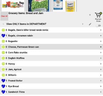 Just tap the department to show the items in the Grocery items list