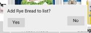 The Rye Bread is added and your view switches to Bread & Jam