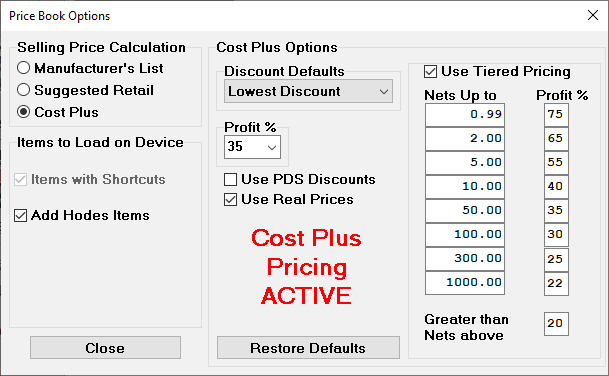 Price book items start with all the items you have created shortcut codes for, much when you click Print, Price book. You can also choose to export the Hodes items by checking Add Hodes Items.